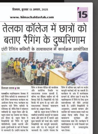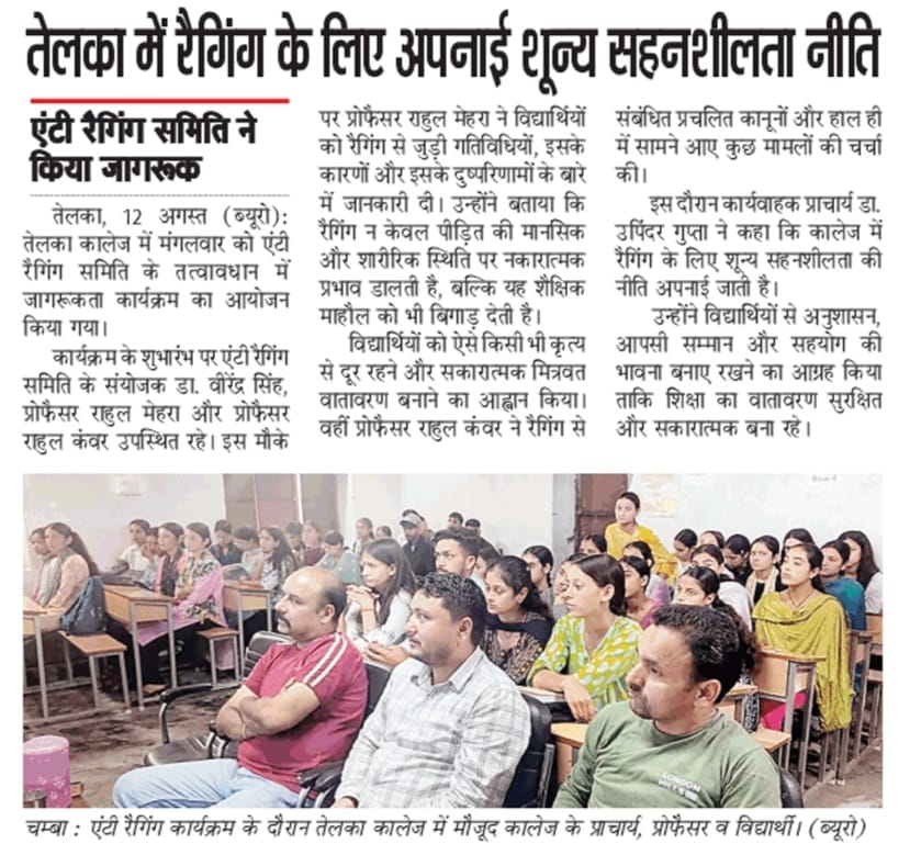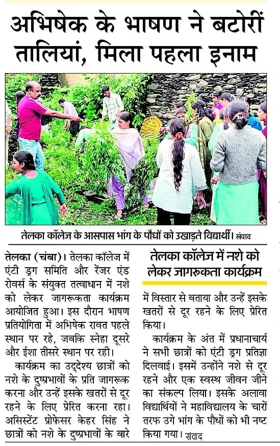 Anti Ragging and Anti Drugs Activities conduct in G. D.C. Telka Distt. Chamba