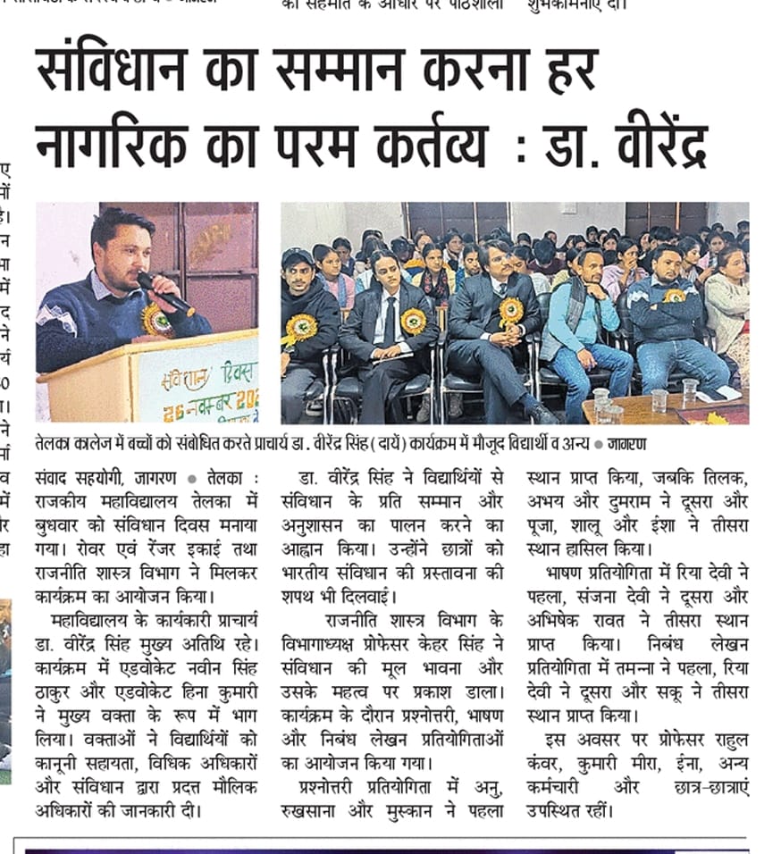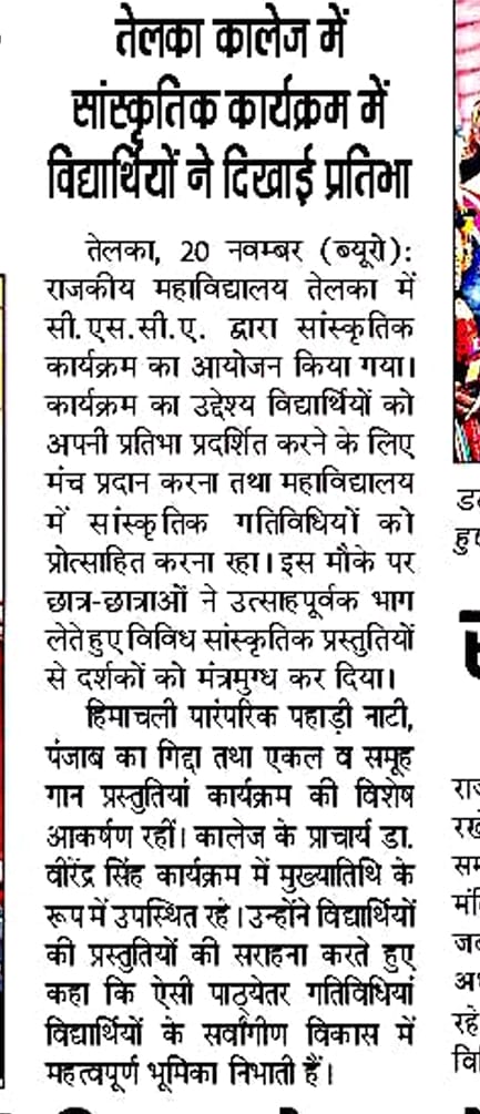 CSCA Cultural Program Organized in Govt. Degree College Telka on Dated- 20-11-2025