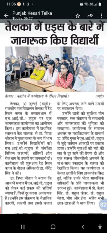 Govt. Degree College Telka Celebrate the AIDS Day Under the Red Ribbon Club on Dated 01-12-2025